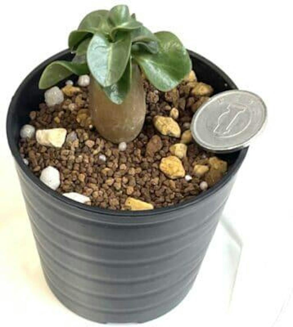 塊根も縦に伸びず横に丸くまとまります。既に可愛いですが、成長すると太った塊根と葉がクルクルッとして、とてもかわいい姿形になります。